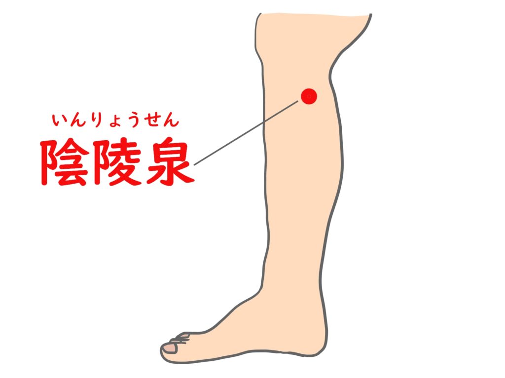 膝の下あたりにあり、内くるぶし側からすねの内側を指でたどり止まるところ